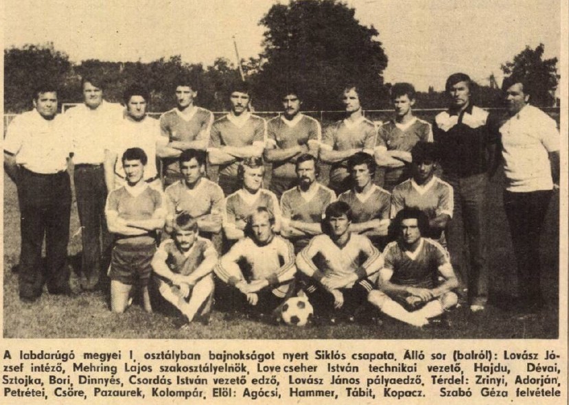 A Siklós csapatában szerepeltek, döntően utónév nélkül: Adorján, Agócsi, Bognár, Bori, Botik, Csöre Gyula, Dévai, Dinnyés, György, Hajdu, Hammer, Kolompár, Kopacz, Kopek, Pazaurek, Peti, Petrétei, Sztojka, Zrínyi. Vezetőedző: Csordás István.