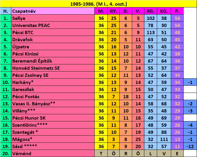 (Források: Dunántúli Napló, heti tudósítások, cikkek, táblázatok, 1985–1986-ból.)