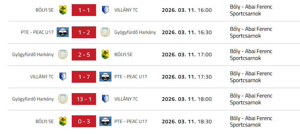 Izgalmasan alakultak a mérkőzések, az élen holtverseny alakult ki, ám a jobb gólkülönbség a Harkány javára döntött, így a harkányiak végeztek az első helyen a PEAC előtt.
