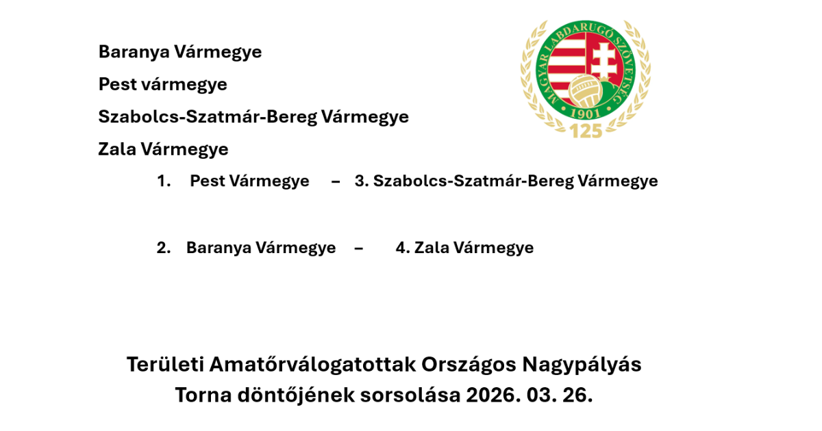Az MLSZ szervezésében 2026. május 1-én és 2-án kerül sor a 8. Területi Amatőrválogatottak Országos Nagypályás Tornájának (TAVONT) négyes döntőjére, melynek az MLSZ Telki Edzőcentruma ad otthont.
