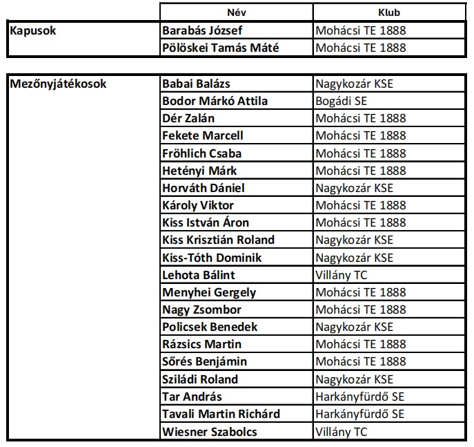 A Baranya Vármegyei Amatőr Válogatott felkészülési programja: