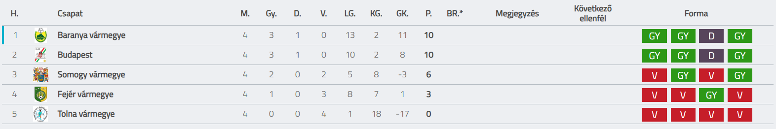 13:30 Somogy - Baranya 1-5 (Góllövők: Rázsics 3, Kiss K, Lehota)